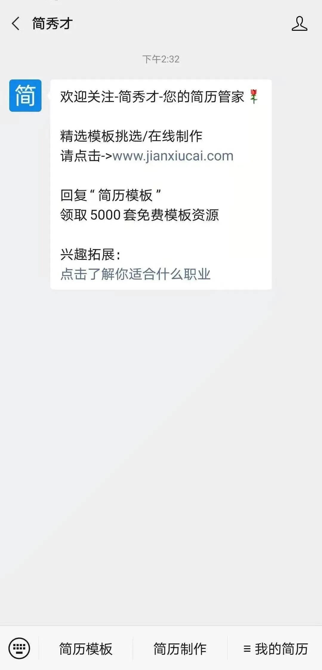 电子简历制作小工具提供手机制作个人简历服务,还有简历模板资源包链接免费下载简历模板使用,里面也提供有海量各职业简历模板使用编辑,只需手机微信即可完成个人简历制作,是不是很方便快捷呢!
