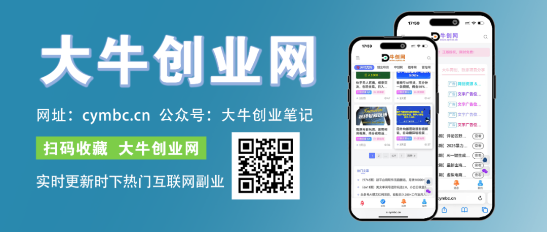 我把文中提到的“选品表、工具清单、运营SOP”整理成了《网创月入10万实操包》,登录大牛创业网(www.cymbc.cn)就能免费领取,帮你少走弯路,快速靠近目标!
