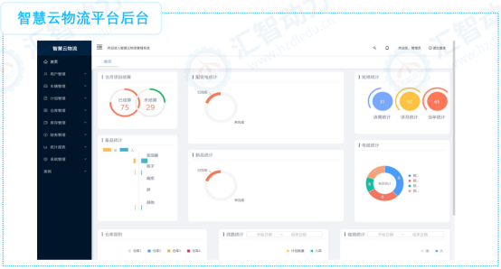 汇智云物流平台,分为前台和后台两部分。后台可以进行相关的配置管理功能,包含车辆管理、 计划管理、仓库管理、库存管理、财务管理、报表统计等功能。