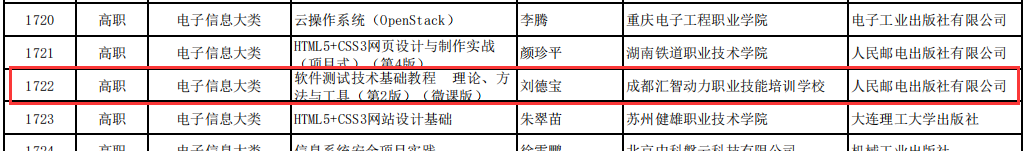 其中,《软件测试基础教程-理论、方法、面试》、《软件测试项目实战之功能测试篇》、《软件测试项目实战之性能测试篇》图书,三本图书被列入“国家级精品资源共享课立项课程配套教材”,在大学院校广泛被采用。