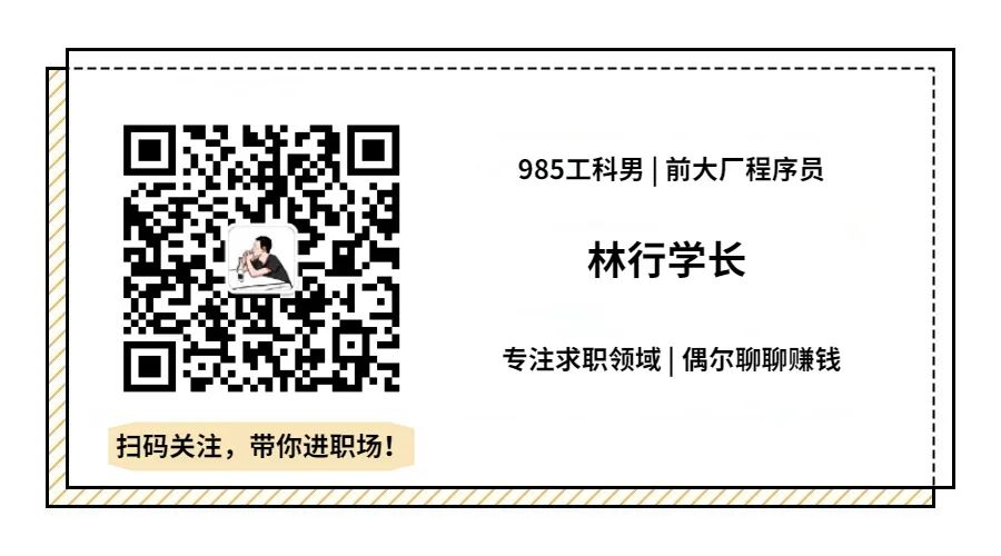 林行学长:985工科硕士,前大厂程序员,曾收获数个大厂SP,现独立创业中,专注求职领域,偶尔聊聊赚钱。