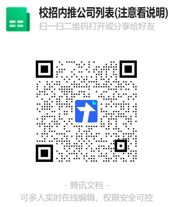 各大厂内推来啦!扫码查看文档即可内推