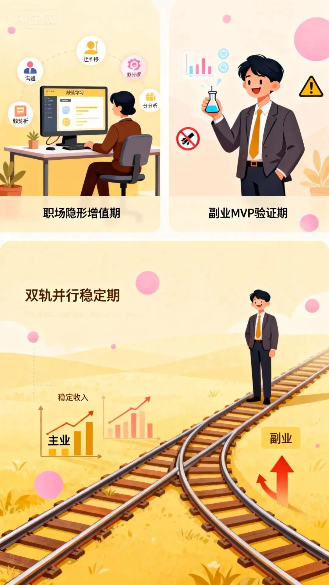 3. 双轨并行稳定期(12个月+):形成主业保底、副业增长的安全系统