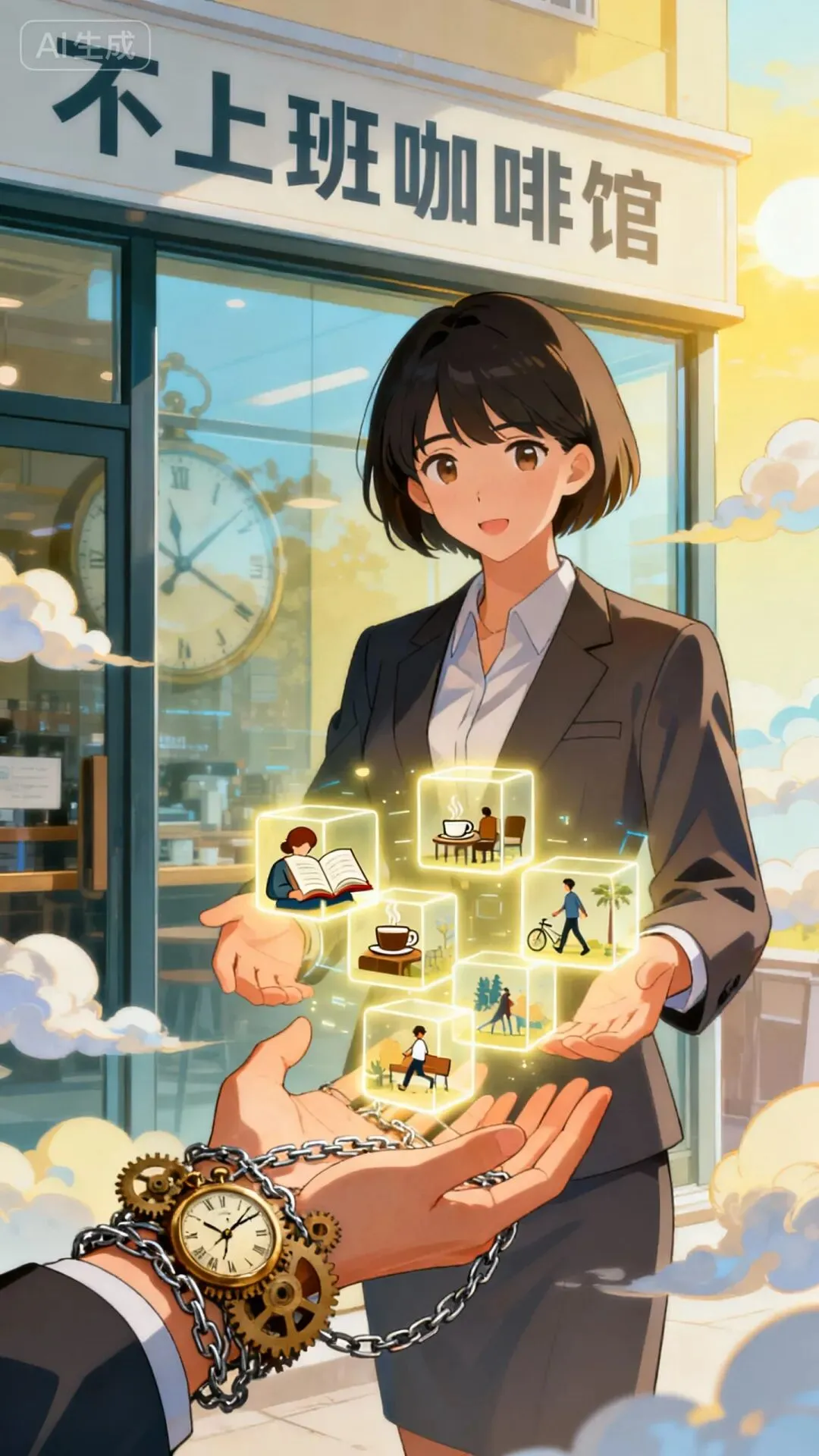 你突然想起大学时的梦想:开一家咖啡馆,每天闻着咖啡香,读自己喜欢的书。然后你苦笑一声,把这个念头像往常一样塞回心底,因为你知道:“别做梦了,不上班,吃什么?”