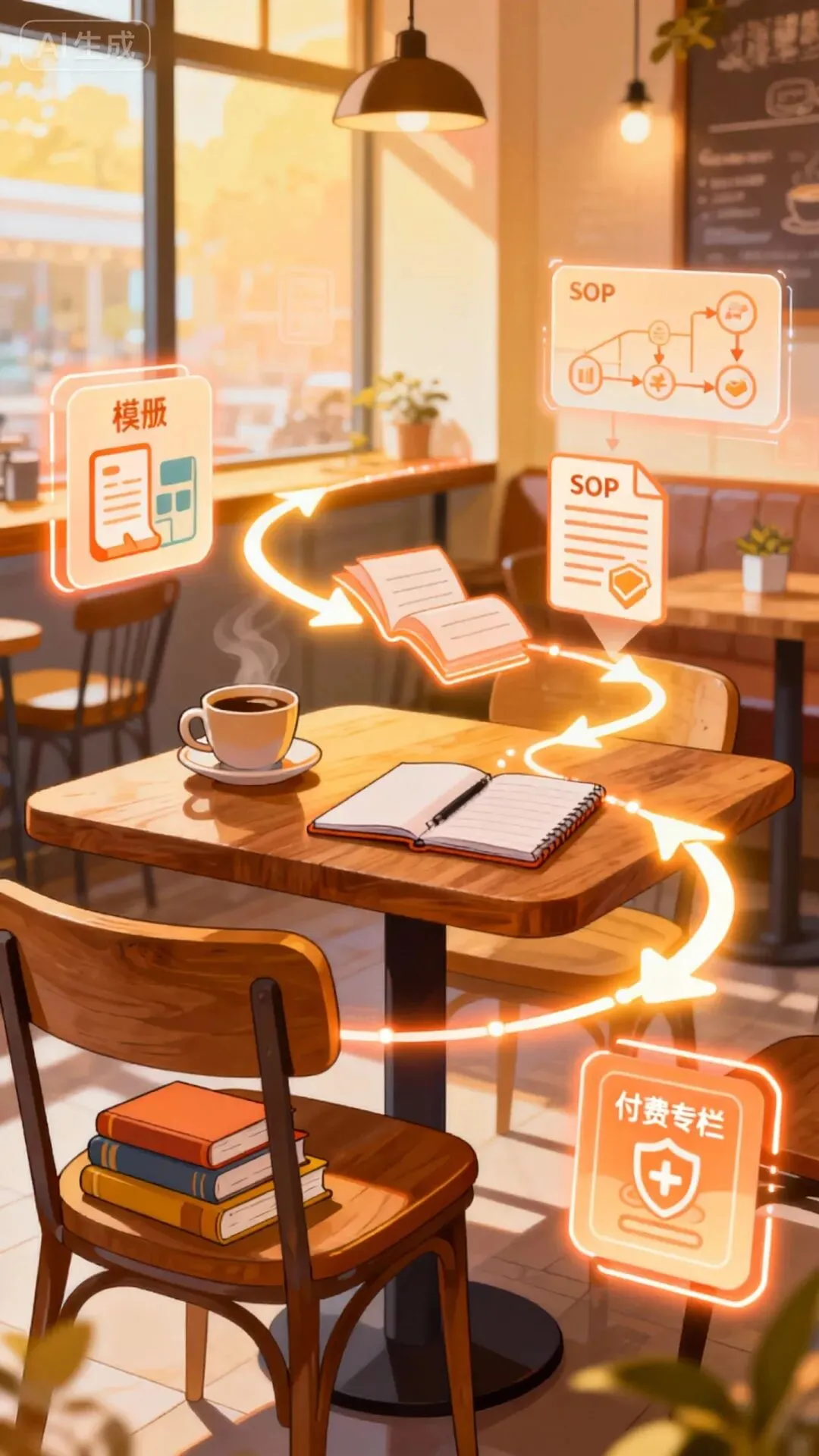 产品化模型:将你的解决方案制成模板/课程(如作者将咖啡馆运营经验制成手册)