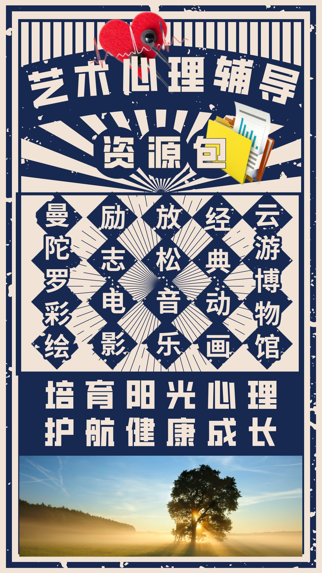 为了更好地开展学校心理健康教育工作,助力班主任开展心理健康活动,促进学生身心全面和谐发展,提高全校师生的心理健康水平,我校心理小屋为师生提供了一份艺术心理辅导资源包。