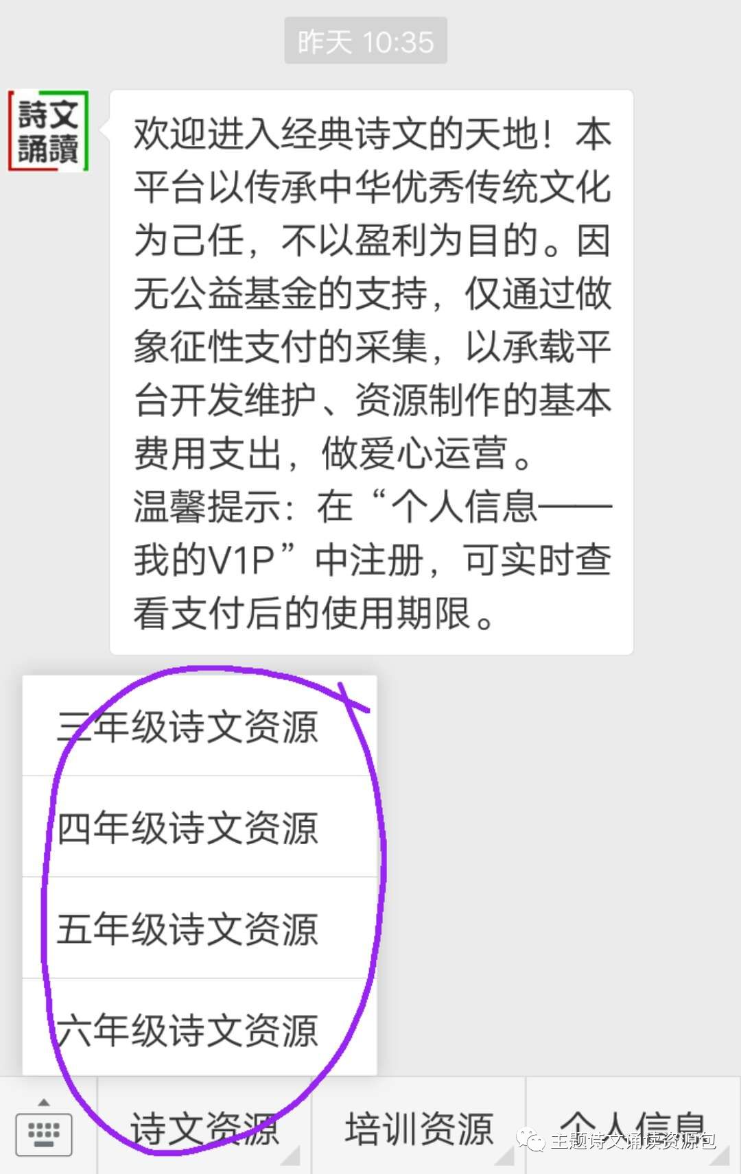【重要公告】大家期盼已久的《主题诗文诵读》资源包微信平台正式开通一周了。这个平台是为使用《主题诗文诵读》教材的教师、学生、家长特意打造的公益性平台。平台中的资源特别丰富,有与教材配套的示范朗诵视频,有教材要求的各类实践活动要听看的资源,有观摩课与教材培训讲座。资源包微信平台试运行期间(3月23日至4月7日),只需象征性支付3元钱即可获取一学期的视听资源。4月7日后上调价格,以承载平台开发及维护费用的支出。资源包开发人员均为义务工作,不获取报酬。可长按下面的二维码,识别二维码,关注后进入平台。