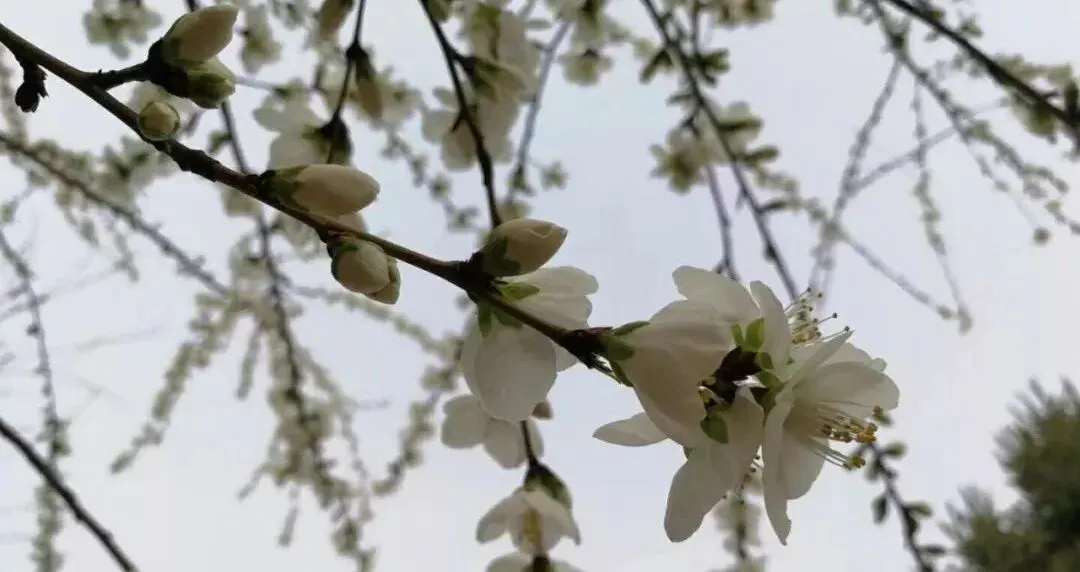 回顾那会儿,一起观察桃花的日子真是美呀!桃花有白的,也有浅粉的,杂夹在一起,真是惹人喜爱。看到一处处的桃花密密麻麻、拥拥挤挤的,让人一下子就明白了新学的那首古诗:“千朵浓芳绮树斜,一枝枝缀乱云霞”的情境。这样美的花,让我不由自主地伸手去摸,花瓣柔柔的、滑滑的,无法形容,只能想象大概摸着天上的云朵就是这般感觉吧。一阵风拂过,桃花仙子们散发着花香在风中翩翩起舞,一起庆贺春天的到来。