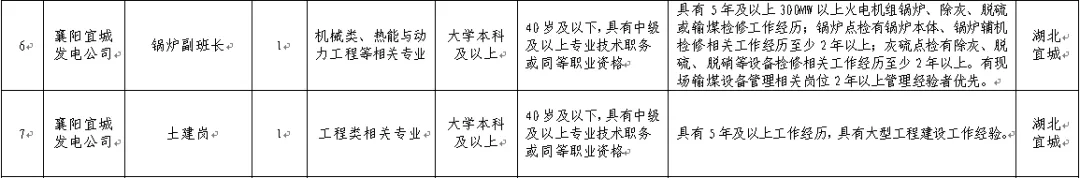 本次计划招聘18人,为湖北能源集团有限公司子企业岗位,具体岗位详见岗位需求表(附件1)。其中襄阳的岗位有: