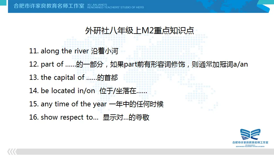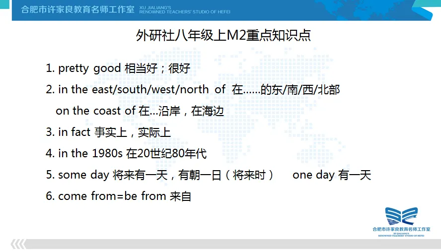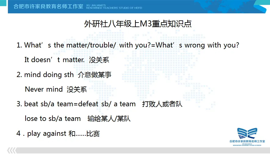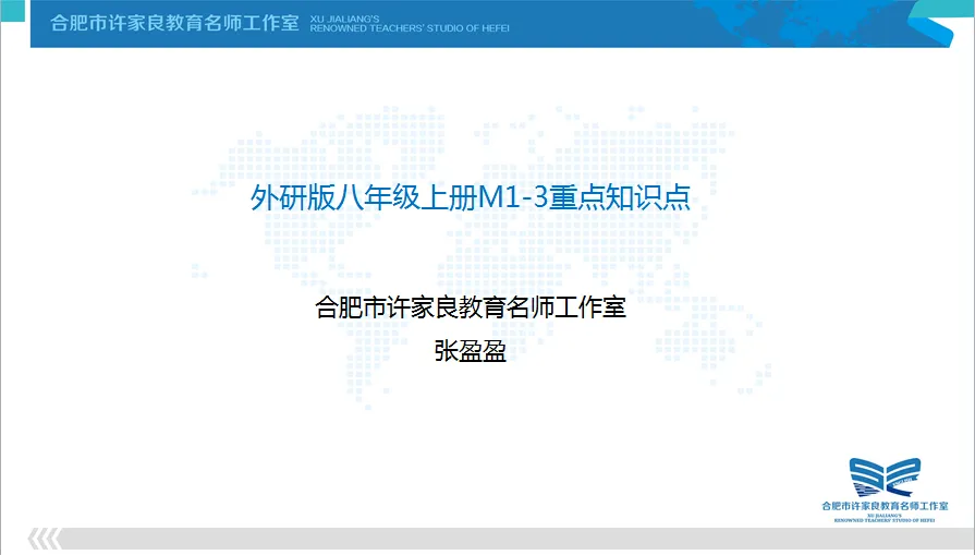 我是来自合肥市许家良教育名师工作室的张盈盈老师。今天,我给大家分享的是外研版八年级上册Module 1-3的相关资源。