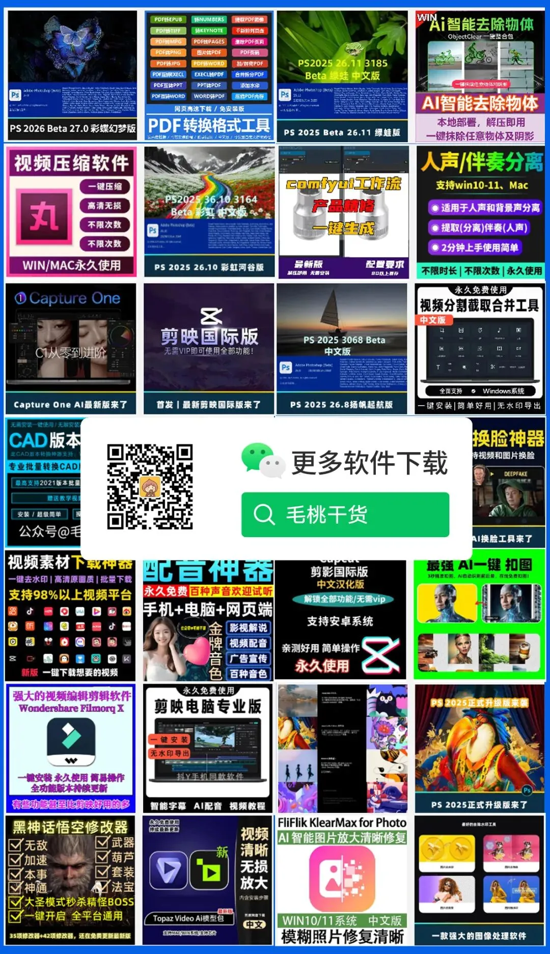 免去资源搜集的烦恼,直接获取公众号超10000G优质资源,全新资源导航使用更便捷,精准搜索,更新一目了然! 让你省下大量时间专心学习、工作。除了公众号推送的资源,我们还为会员不定时更新其他优质资源,全行业覆盖,海量优质资源,想学什么就学什么!整合目前各稀缺网站集/神器/福利/破解等,比如:免费下载电子书、下载音乐,下载论文等免费供大家使用,点击链接一键可跳转,一键折叠式交互,方便快捷!让你真正体验到免费网站给我们带来的便捷,还在持续更新中...我们为会员准备了专属软件导航,详细分十三大类学习软件,供你免费下载,并附有详细安装教程,所有软件均为0病毒0插件,就是这么省心!(WIN系统和MAC系统)我们还为会员准备了豪华大礼包,包含网盘加速器、设计师必备导航、1000集PS冠军课、170G电商视觉设计教程合集、中英文字体包、平面设计资源包、摄影资源包、设计师知识地图、影视后期及音乐资源包、600+精美ppt模板资源、34G超大英语学习资料大礼包、超高清屏幕录制工具等等..福利翻倍!!持续更新:资料会持续更新,不断丰富资料种类和内容;每一份资源,都是我们精挑细选为大家准备的。长期有效:成为会员后,资源长期有效,随时用随时查看。🔥 毛桃超级会员 · 限时特惠 🔥——————————————————