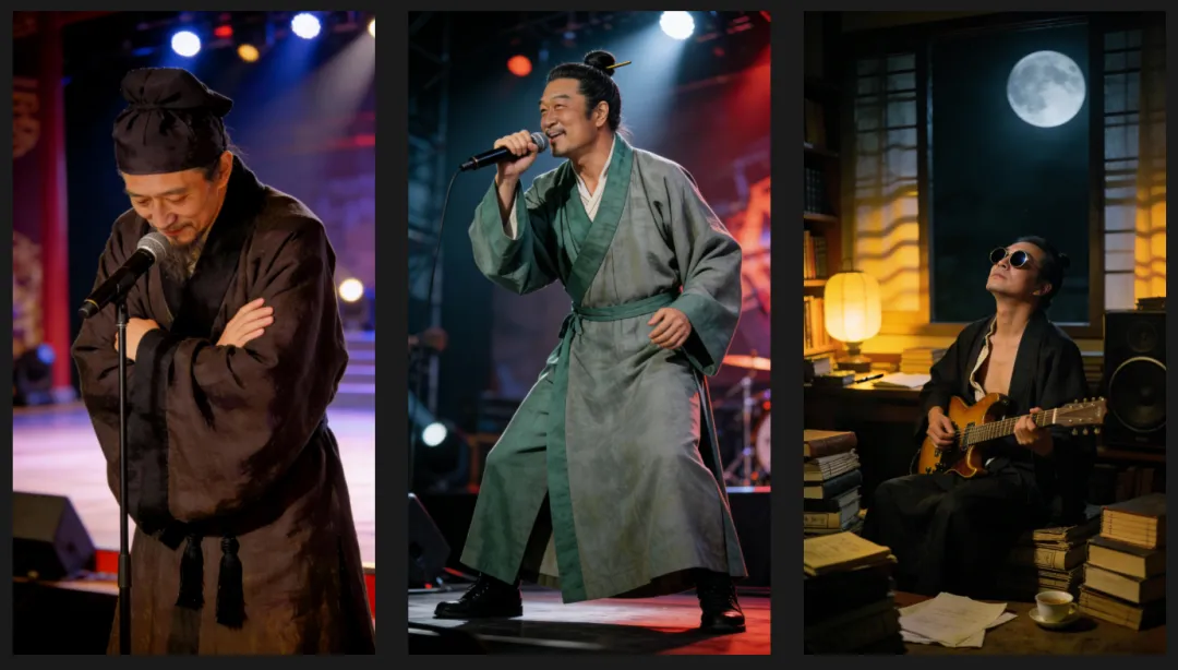 ✨ 案例2:柳宗元《寒江独钓·河东魂》—— 暗黑民谣摇滚舞台