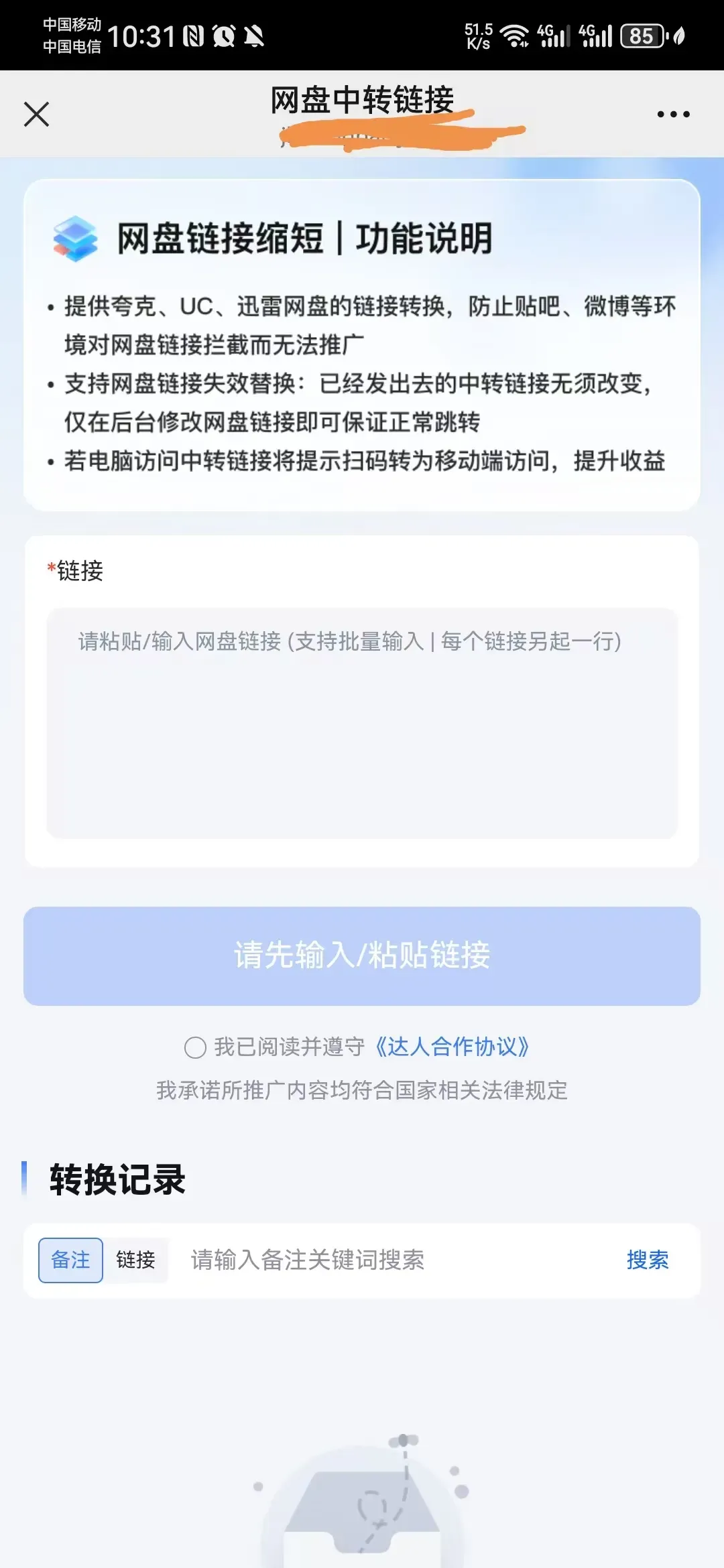 场景1:部分平台对网盘链接拦截或者删除,从而网盘推广戛然而止。平台提供夸克、UC、迅雷网盘的转换链接,有效跨过屏障;