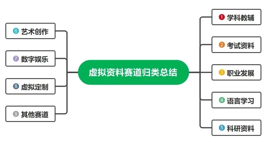 学科教辅、考试资料、职业发展、语言学习、科研资料、艺术创作、数字娱乐、虚拟定制、其他赛道