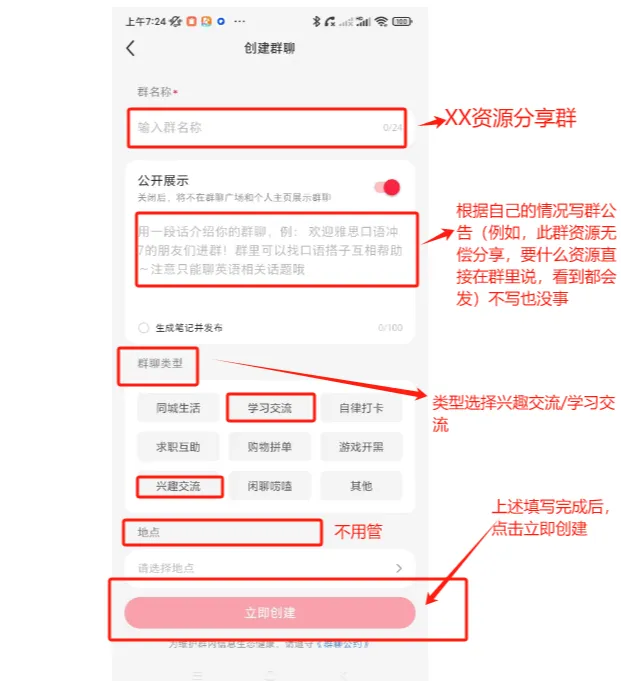 小红书建好群,配置好群里一些基本信息,方便玩家下载我们资源