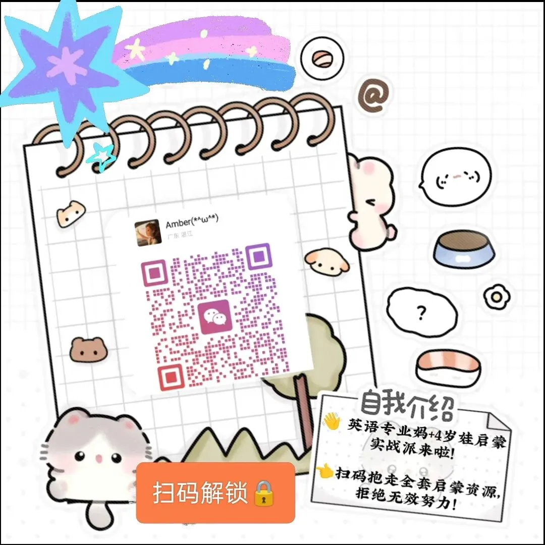 🔔更多英语启蒙技巧+启蒙资源(儿歌、动画、绘本、自然拼读等),欢迎关注我的公众号哦,后续会持续更新,人生是不断学习的过程,让我们一起解锁孩子的语言潜力,和宝贝更好地共同成长吧!