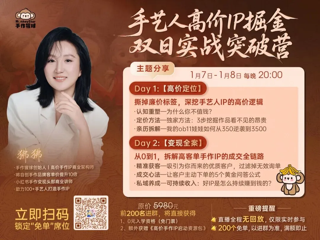 前200名更可免费获得《高价手作IP启动资源包》,识别海报二维码,锁定席位。