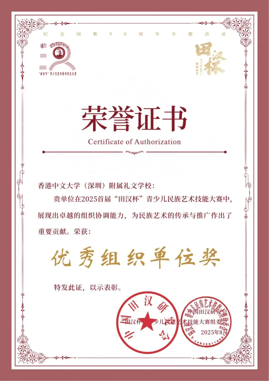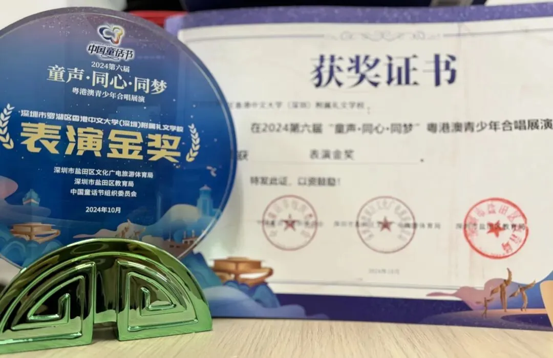 同时,科组系统开发了小学合唱、初中舞蹈、初中合唱、小学弦乐等系列校本课程,配套编撰《合唱教学手册》《中国舞》等体系化教学资源,形成多套可复制、可推广的课程资源包。社团实施“普及—提高—拔尖”的梯队化培养,成果显著:小学合唱团、初中舞蹈团先后在粤港澳青少年合唱展演、湾区模范少年评选等市级赛事中荣获金奖。