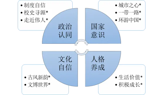 德育特色课程建设要以立德树人为根本任务,将社会主义核心价值观融入教育的全过程,继续深入推进两纲实施,引导学生形成积极主动的人生态度,树立正确的价值观。依据上海市大中小幼一体化德育内容“政治认同、国家意识、文化自信、人格养成”的框架,构建黄浦区德育特色课程内容序列:党的领导、科学理论、理想信念;家国情怀、社会责任、世界眼光;文化积淀、人文情怀、时代精神;明理守法、美德传承、积极成长,形成与各内容模块相匹配的系列化德育特色课程。