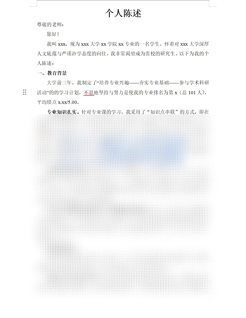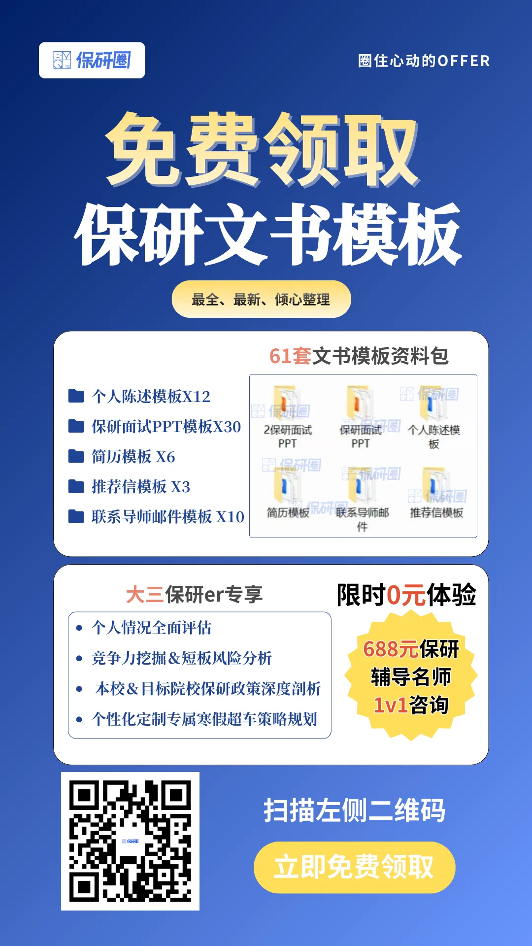 进行保研材料准备时,文书就是你的第一份自我介绍。一份条理清晰,逻辑通顺,亮点突出的文书,既能完美彰显你的个人能力,也能给招生老师留下亮眼的第一印象。