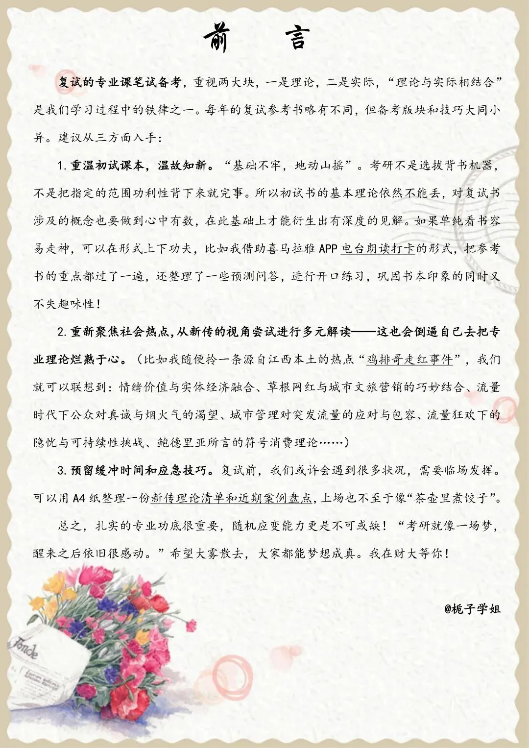 江财新传考研复试脚步渐近,