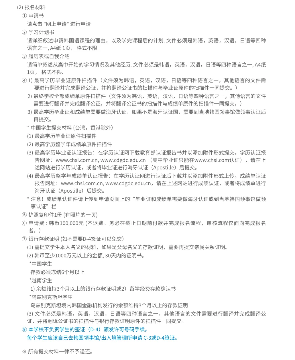 韩国语学院/本科/硕士申请