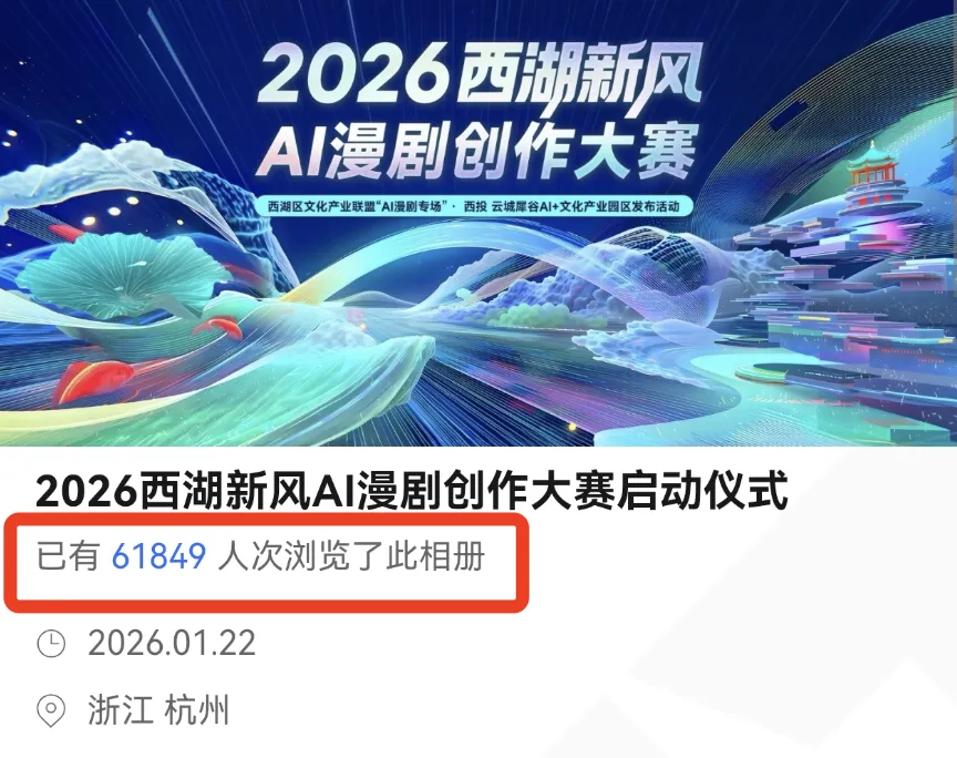 2026西湖新风AI漫剧创作大赛将于近期发布参赛细则,锁定wuhu!咱们一起战斗!