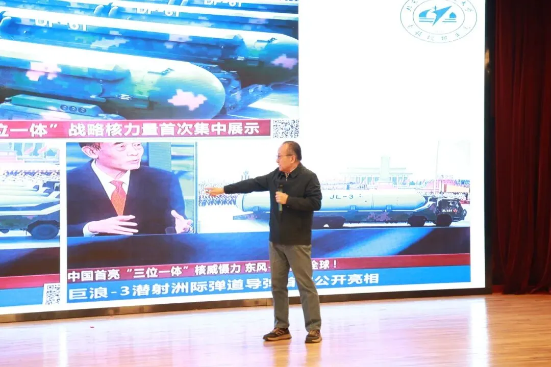 本次活动的核心环节,是北航老教授报告团名誉团长郑彦良教授带来的《中国航空航天发展与科学家精神》专题讲座。深耕航空航天领域多年的郑教授,兼具深厚的专业学识与生动的叙事能力,他的分享既有宏大叙事的震撼,又有微观故事的动容。讲座中,郑教授带领同学们回望新中国成立76年来航空航天事业波澜壮阔的发展历程:从航空工业从无到有、从弱到强,从长期落后到跟跑、并跑再到部分领跑;从C909、C919成功入列、C929即将试飞的民机突破,到歼-20、运-20、直-20列装、轰-20在研的军机跨越,再到长征系列火箭、北斗通讯系统、中国空间站、嫦娥探月、火星探索等航天重器的惊艳亮相,一个个里程碑式的成就让现场师生倍感自豪,深刻体会到我国航空航天从大国迈向强国的历史性跨越。