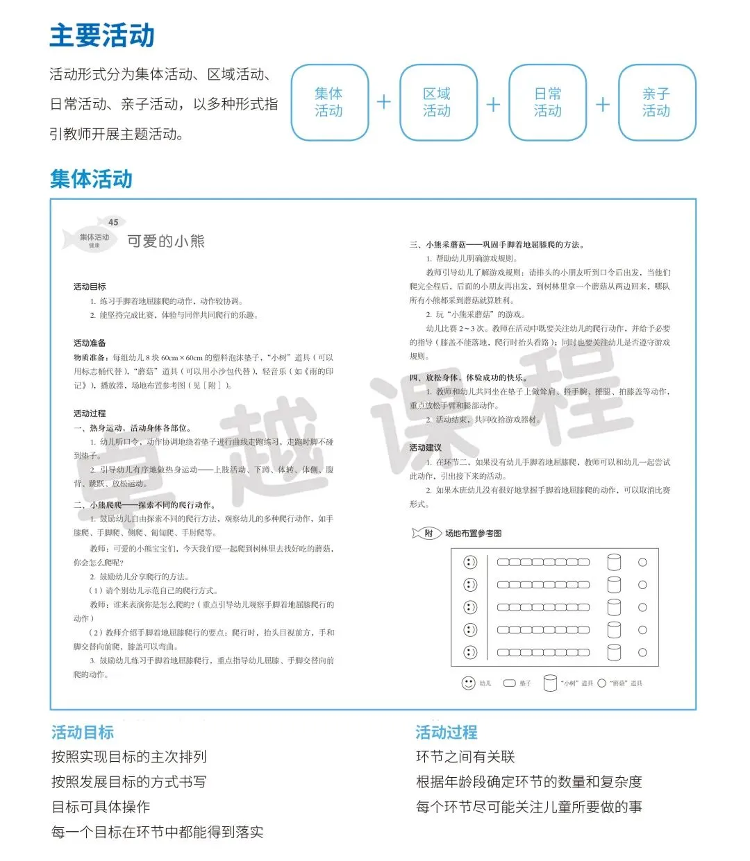 每本围绕一个主题,包括故事、儿童诗歌、音乐、科学探究、艺术欣赏、自然观察、行为习惯等内容,便于教师带领幼儿一起阅读、探索、思考。