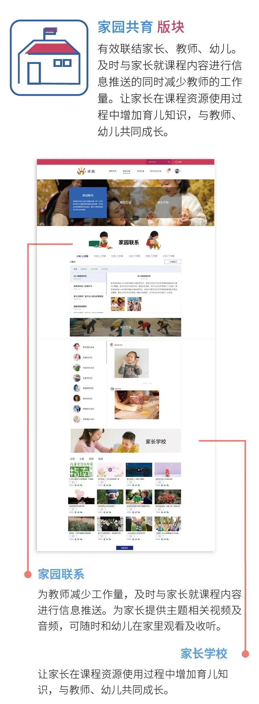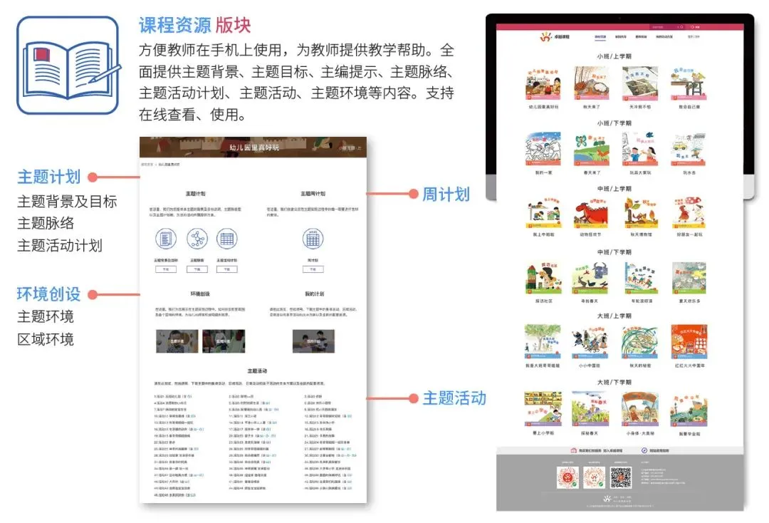 创新“线上+线下”课程资源联动使用模式,融合卓越课程网站和微信小程序平台,为幼儿园的课程实施、家园共育、教师成长,提供丰富、持续更新的线上多媒体数字资源。