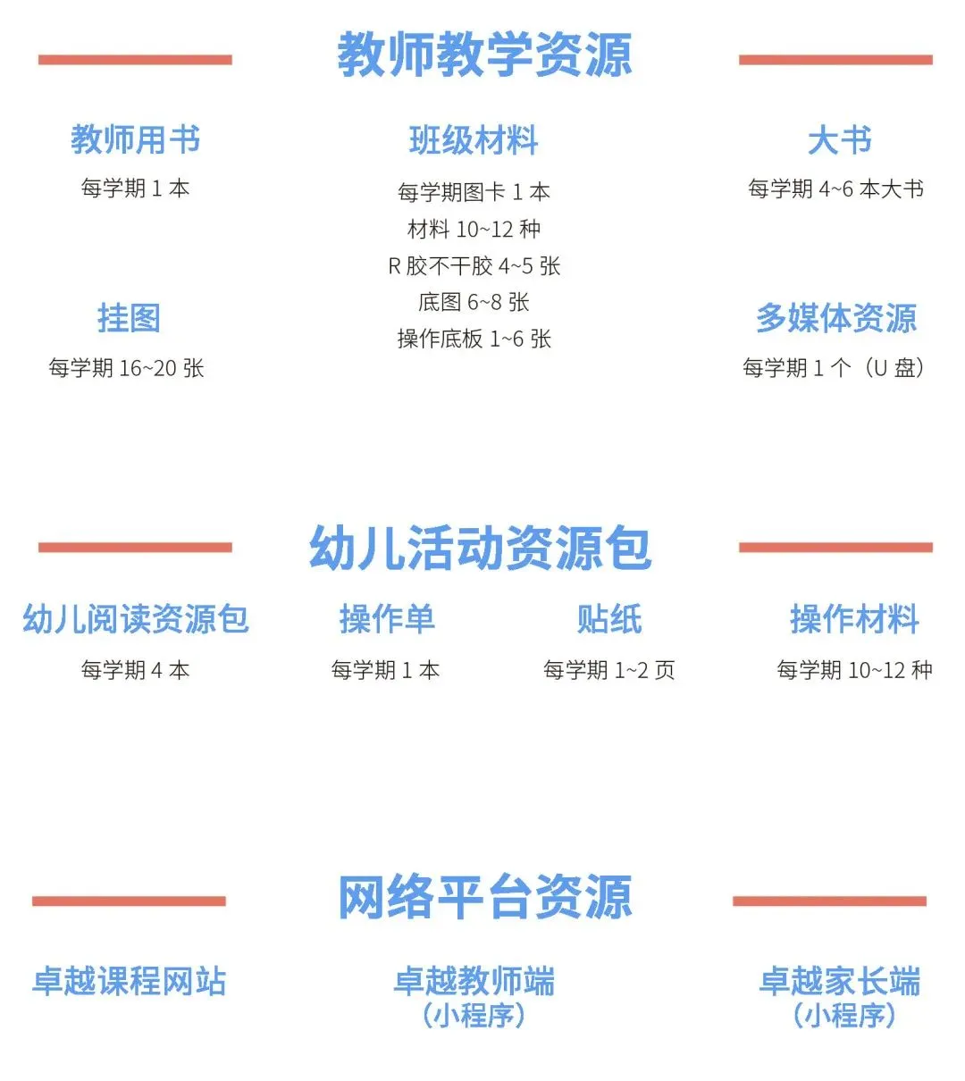 本套课程资源秉承“活教育、全儿童、大课程”核心定位,全系列产品充分彰显了理念深厚、体系严谨、美观实用、普适开放等特点。以“多元产品使用(有形)+专业服务引领(无形)”为重要基石,“卓越课程”在全国众多地域落地生根,成为帮助当地幼儿园进一步优化课程建设水平、教育主管部门整体提升全域学前教育质量的重要力量。