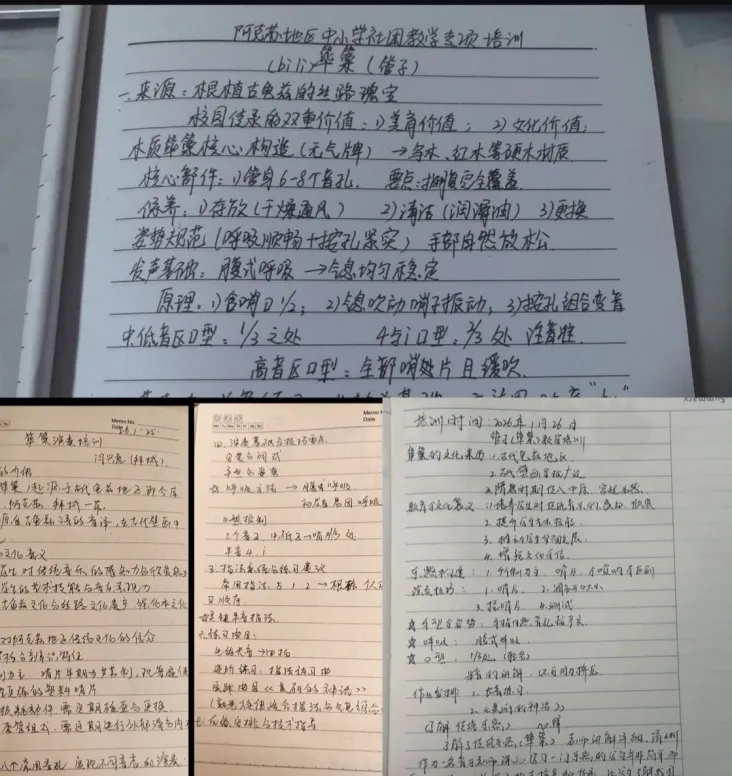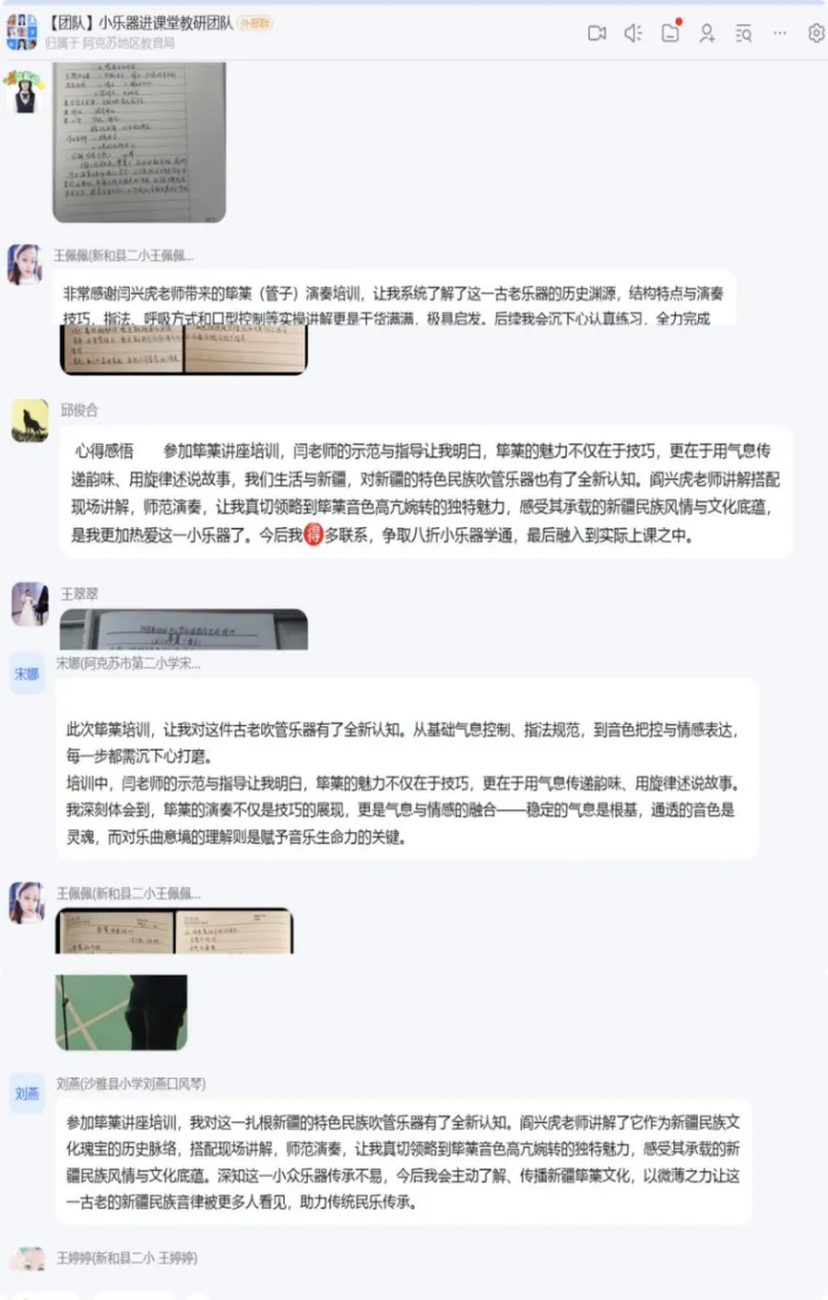 经过系统培训,33名参训教师(含24名筚篥演奏研修小组成员)实现了技能与认知的双重提升。大家不仅掌握了筚篥基础演奏技巧与教学核心内容,而且提升了在校园开展基础教学的能力,更深刻理解了本土文化资源的珍贵价值,传承地方文脉、从而更好地培育学生本土文化认同的使命感。培训交流群已成为教师们常态化沟通探讨的平台,为后续持续学习、经验共享提供了有力支撑。