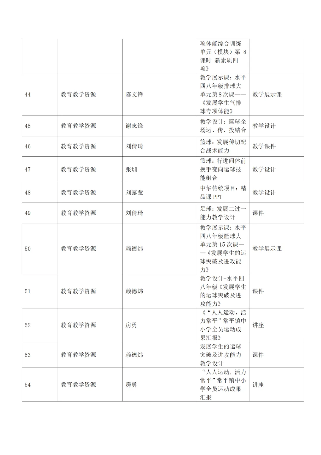 工作室成员深耕体育教学教研,成果丰硕亮眼。开展示范讲座、公开课及跨区域联合研修数十场,辐射市、镇体育教育骨干超千人次。成员深耕教科研,斩获国、省、市、镇级教学竞赛、论文、课题立项等多项荣誉,科研成果层级丰富。同时自主研发校本课程、教学设计、课件等优质教学资源 70 余项,构建 “人人运动、活力常平” 体育育人体系,以研促教赋能区域体育教育高质量发展。