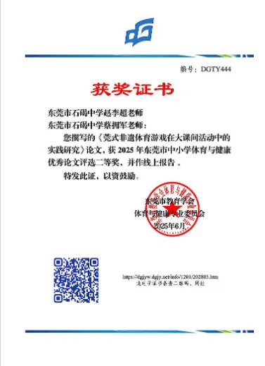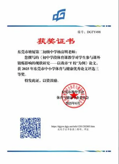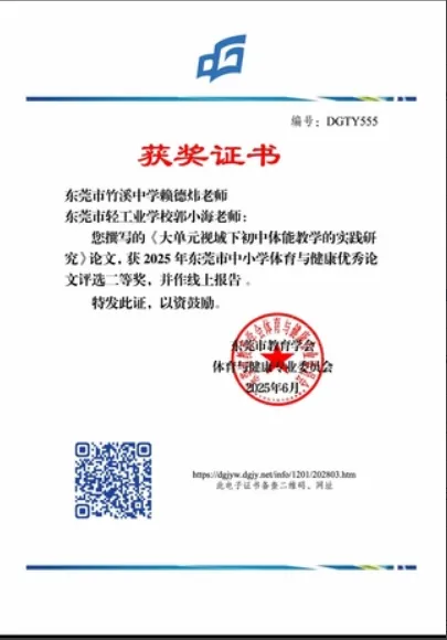 启动"信息化教学能力提升计划",开展AI技术与体育教学融合专题培训3次,指导学员运用数字化教学工具优化课堂设计。选取2所试点学校探索"趣味化+技能化"教学模式,将基础运动项目与游戏、小组竞赛相结合,提升学生运动参与积极性。全年录制优质课例18节,其中2节入选东莞市体育教学优质资源库,2节获市级教学案例评比二、三等奖。