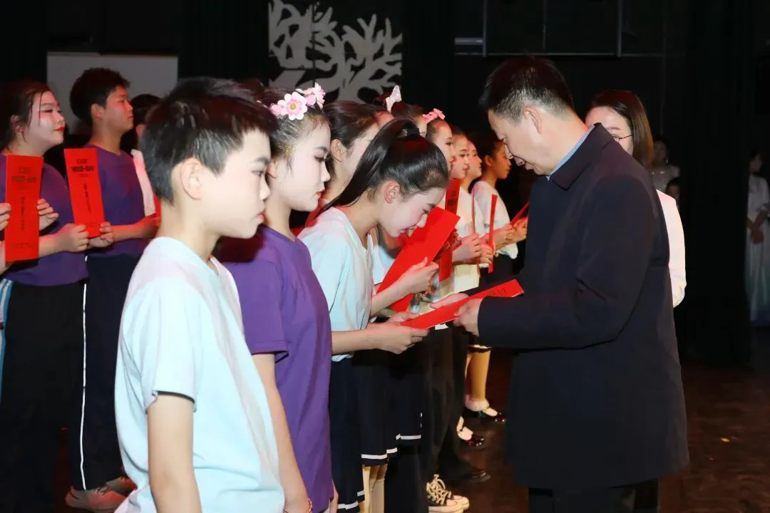 晚会现场还为 2025 年六一期间登上国家大剧院的 30 名优秀学员颁发了荣誉证书。这些学员曾赴国家大剧院参加 “我和祖国一起成长” 六一主题演出活动,中国宋庆龄基金会、中国福利会、国家大剧院、北京市教育委员会联合颁发证书表彰奖励他们在此次活动中的优异表现,这也成为市青少年宫深耕艺术教育、培育后备人才的生动见证。团市委四级调研员王剑、市文旅局副局长段军林、团市委副书记刘汉朋为载誉归来的孩子们现场颁奖,勉励他们珍惜荣誉、再接再厉,将此次高光时刻化为艺术道路上持续前行的动力。