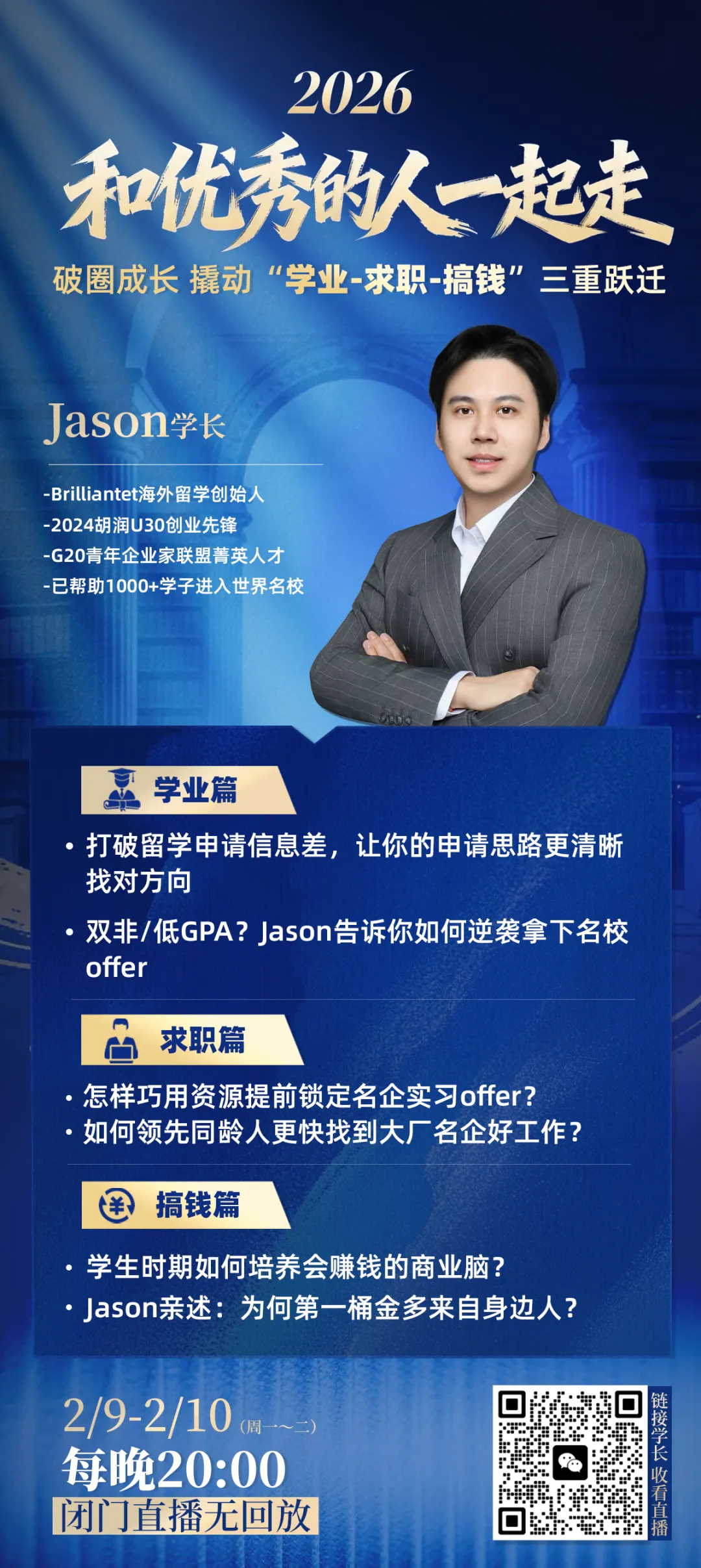 Hi,我是 Jason,Brilliantet海外留学创始人,成长合伙人俱乐部的发起人。