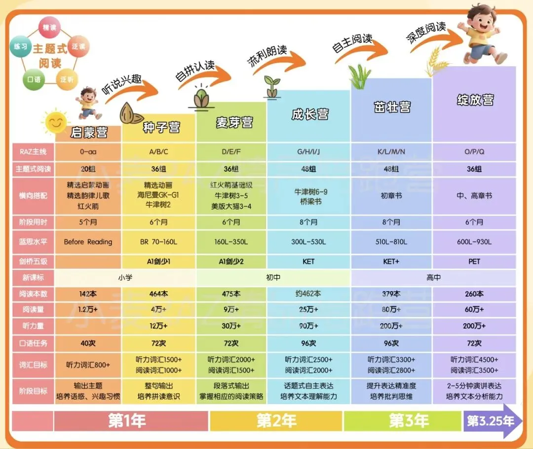 我们的“三阶段”划分,与网上认可的某“分级阅读成长营”体系,在核心逻辑上完全一致,不谋而合。这套体系同样强调: