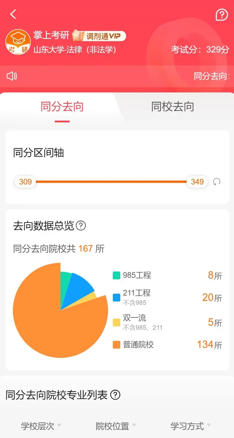 看去向:“和我分数差不多的学长,最后都去了哪?”调剂去向功能直接展示往年同分段、同校考生的最终流向,给你最真实的参考。