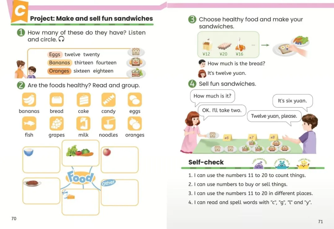 3. Group work: Four in a group. Two are customers. Two are shop assistant. Order food in a restaurant. Then, invite groups to act out.