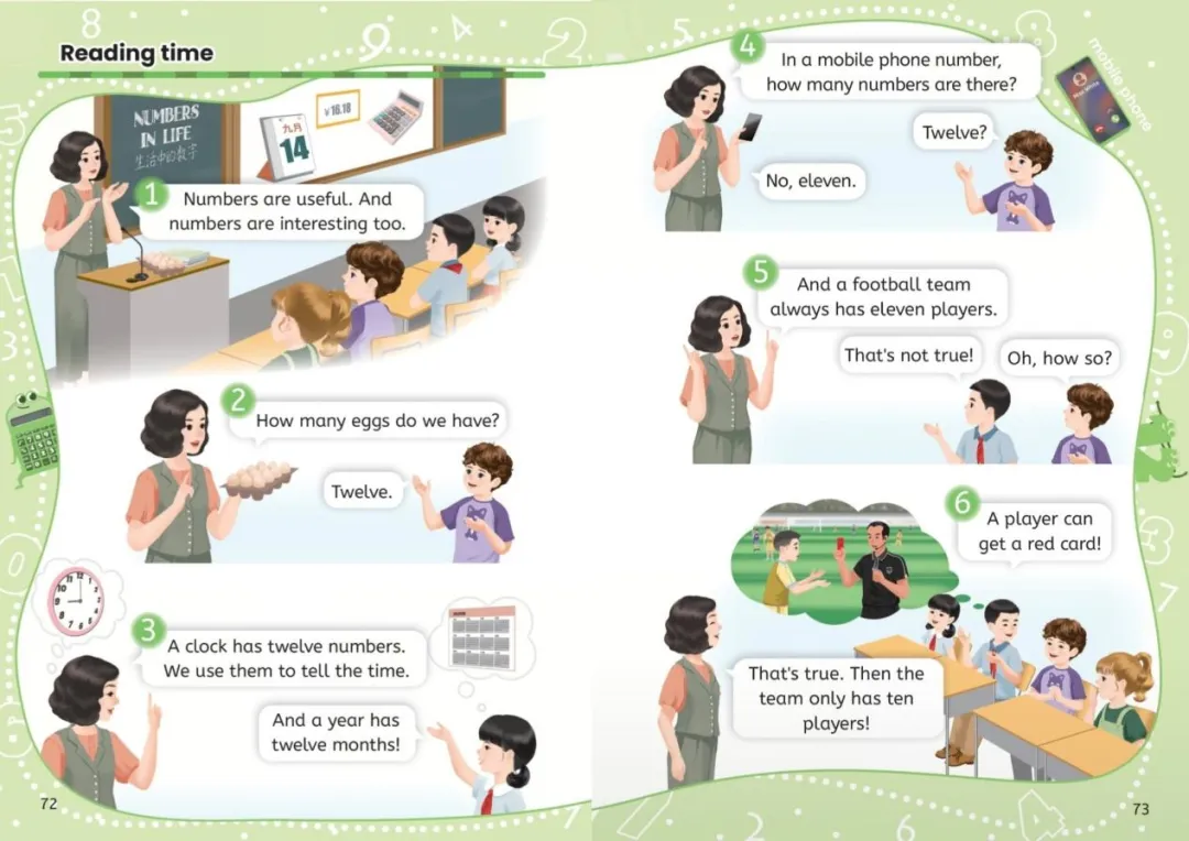Play again. T: Mum gives Mike some bread and eggs. What does she say?