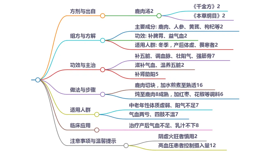 - 配伍逻辑:三药合用,以鹿肉为君药直补虚损,黄芪为臣药助气生血,大枣为佐药调和脾胃,形成“温而不燥、补而不滞”的平衡。