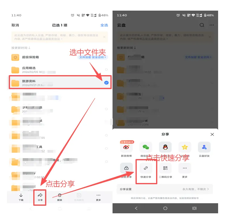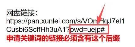 网盘链接:进入到迅雷网盘,点击“云盘”,找到先创建的文件夹,选择你需要推广的文件夹,选中它,然后点击下面的“分享”,找到点击“快速分享”,这样就可以获取网盘链接,回到星子助推,直接粘贴进去关键词申请那里,点击确定,然后等待审核通过就可以使用。