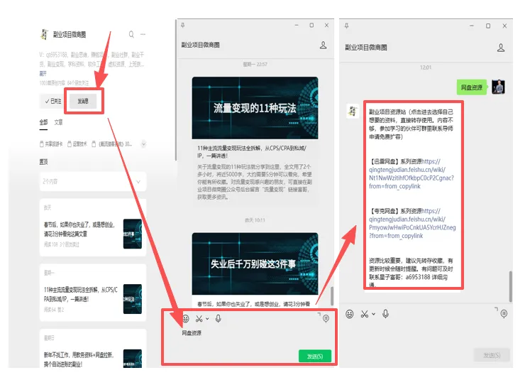 新手可以直接转存我们提供的资源(在副业项目微商圈公众号对话框回复“网盘资源”免费获取,发不了消息的记得行关注才能发送消息),后续你自己学会找资源了,可以自己转存你自己找优质资源。