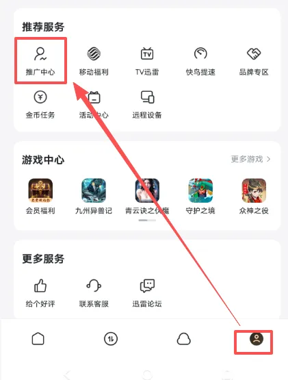 登录进云,打开首页“推广”,找到“网盘”,点击“迅雷网盘-特邀版”进去