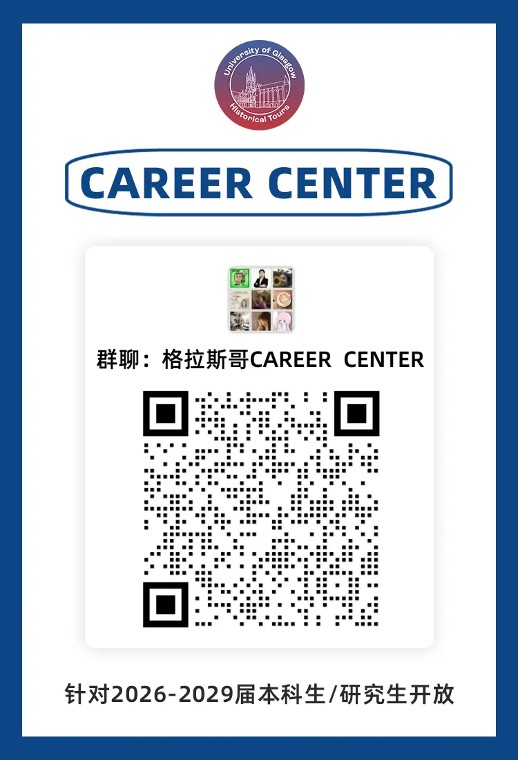 为帮助大家顺利求职,获取一手校招资讯&提升技能。现特别推出:格拉斯哥 CAREER CENTER↓↓↓
