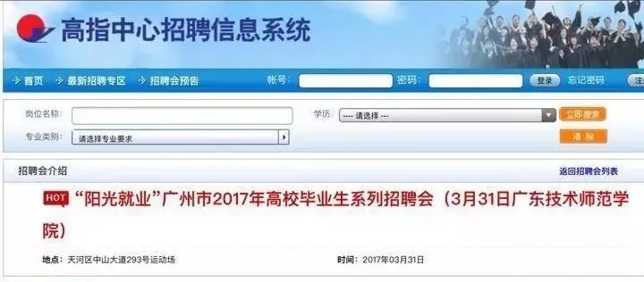 2017年广州市“阳光就业”高校毕业生公益招聘会