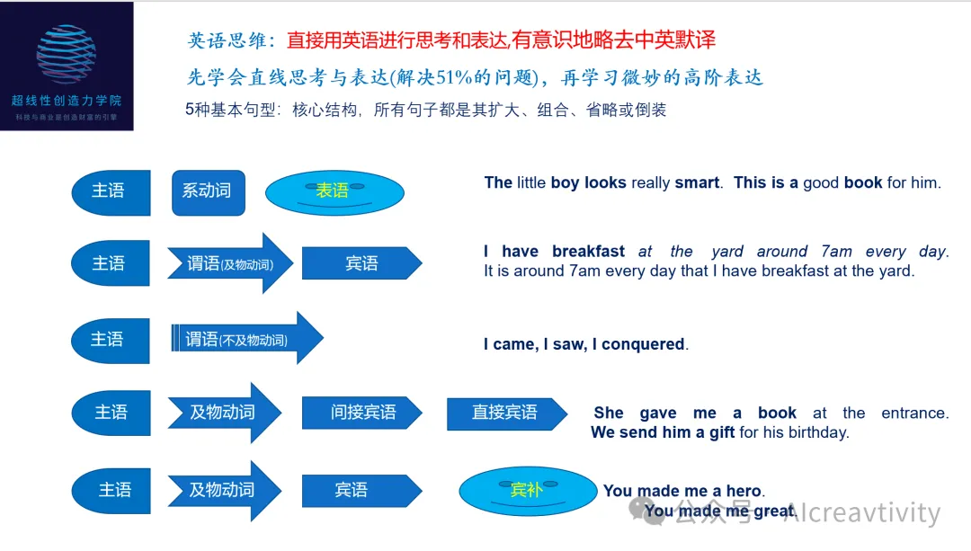 在前述阅读量和词汇量的大样本基础上, 学习语法事半功倍 极简语法:2-4周