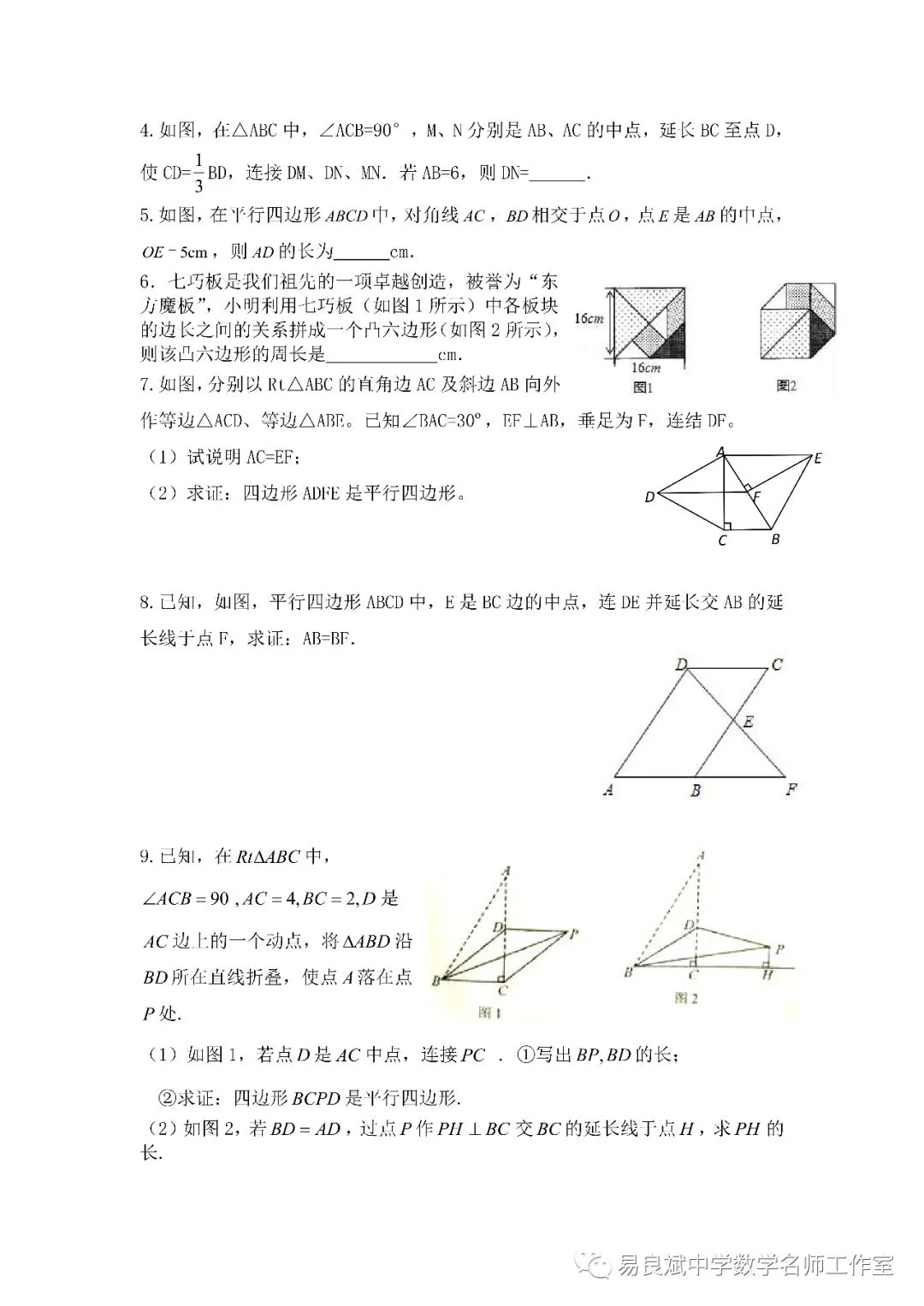 平行四边形的判定、三角形的中位线、多边形的面积
