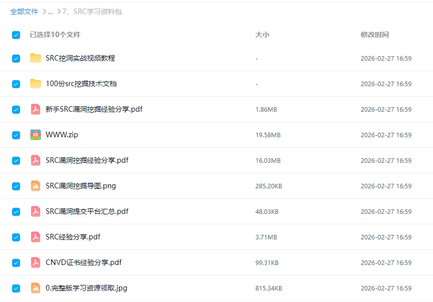 在真正开始埋头苦学之前,第一步不是盲目刷课、装工具,而是先对自己有一个清晰认知:你更喜欢动手挖洞、攻防实战,还是偏向合规、制度、运维?只有先确定大致学习方向,才能避免走大量弯路,实现精准高效学习。先定方向,再打基础,最后深耕技能 —— 这才是网络安全最稳的入门路径。为了帮大家少走弯路、系统入门,我整理了一份网络安全入门到进阶系统学习笔记,包含:内容从基础到进阶,循序渐进,适合零基础入门、自学提升、准备转行的朋友。需要的同学可以直接领取⬇️,跟着体系化学习,效率翻倍!免费领取方式