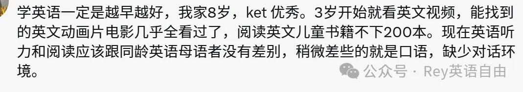 这是我4周前发在外面的分享,阅读量24万,点赞收藏超过3500,10岁看Minecraft解说(180-240词/分钟)无需字幕 之前重视阅读,认知难度高,因此输入量有限,有进步但缓慢;视频/音频输入量:150-200词/分钟=9,000-12,000词/小时她痴迷玩“我的世界”(微软旗下的开放式创造力游戏), 在B站看中文游戏解说。 我灵机一动,提出看英文解说就不限时。 她欣然接受,起早贪黑地看,每天2-3小时, =输入量2.5-3.6万词/天=80-100万词/月,2个月后突然不需要字幕了。我大吃一惊,赶紧用NotebookLM(谷歌AI)研究原因,结论是学术界讲的认知难度降低(她玩过中文版,听过中文解说,熟悉场景,画面降低了理解角度,大量的猜测——积极的学习)+Stealth learning(无意识学习,母语学习法里的海量输入之后的潜移默化)。 去年暑假期间我带她读了美国国家地理Reading Explorer 系列的Level 1-3,接下来上学2个月期间读了Levl 4和5( Level 5=C1水准)比如The President's murderer ;背出来的词汇量是虚假繁荣:脱离了句子和语境,会读不会用;不必额外花心思,结果发现大错特错,中英翻译法是阅读速度下降90%和哑巴英语的罪魁祸首。主要原因就是前一条, 如果从2-3岁就大量看动画片, 评论区:无痛学习的方法是大同小异的(因为符合无痛的母语学习法),学得极其痛苦的方法是各式各样的(背单词范文、记语法知识点、阅读速度上不去、词汇量上不去等等)从结果看方法/向取得结果的人学方法:大学本科毕业生学16年英语,英语达到基本对外交流水平的不足2%——说明路径和方法急需调整。对比:12岁达到B2水平,口语流畅,初中高中就可以腾出大量时间。3.建议(家长不懂英语不要紧,提供自由度和资源就好)3) 6年级解决英语,最迟初二;初三、高中基本没有时间补救最低限度:6-7年级达到中考水平,7-8年达到高考水平,同时口语流利6) 自然积累了3000-4000有效词汇量之后,开始学习极简语法 (英语只有5种句型) ,如此事半功倍7) 英语水平达到B2或C1级别后,可以大量使用各科英语原版教材美国大学教材(尤其是科技和商业类别)更新周期为2-3年,目标:初三达到高考水平或大学四六级,口语流利,不上教培不要外教用最新的鲜活前沿优质资源(比如Mark Rober视频-前NASA工程师),母语法无痛学英语视频优先,多模态突破哑巴英语“听说读写”的学习方法是30年前的正确方法 “看-听说读写”才是今天的正确方法 看视频在英语学习中的独特价值, 本质上是一场认知效率的革命, 当我们观察婴儿习得母语的过程, 会发现他们是通过三维场景中的声音、图像、动作的同步输入建立语言神经网络的。 传统"听说读写"四步法将立体认知强行拆解为线性流程,相当于要求学习者先记住乐谱符号再理解音乐。 视频学习的颠覆性在于重构了语言输入的自然顺序: 在《老友记》中看到Ross搬沙发卡在楼梯转角时大喊"Pivot! Pivot!",学习者瞬间将语音、肢体动作、空间困境与词汇含义熔铸成记忆晶体。这种多模态输入形成的神经回路强度,远超单一听觉或文字输入。 MIT脑科学研究证实,视觉皮层与听觉皮层协同激活时,记忆留存率提升47%。 传统教学法的认知断层在初级阶段尤为明显。 纯音频学习如同在黑暗中听人描述大象, 文字学习则是通过象形符号间接想象, 视频学习者直接观察大象行走时皮肤的褶皱波动,听见象鸣在空气中的震颤,这种全息认知产生的"具身记忆",正是克拉申输入假说中理想的可理解性输入。 关键:音画同步+不要字幕(否则哑巴英语),由易及难; 2) 阅读视频的对应文本或图文书(不要纯文字), 将听力词汇转化为阅读词汇(可用点读笔等)。 视频/图文书: Apple-->